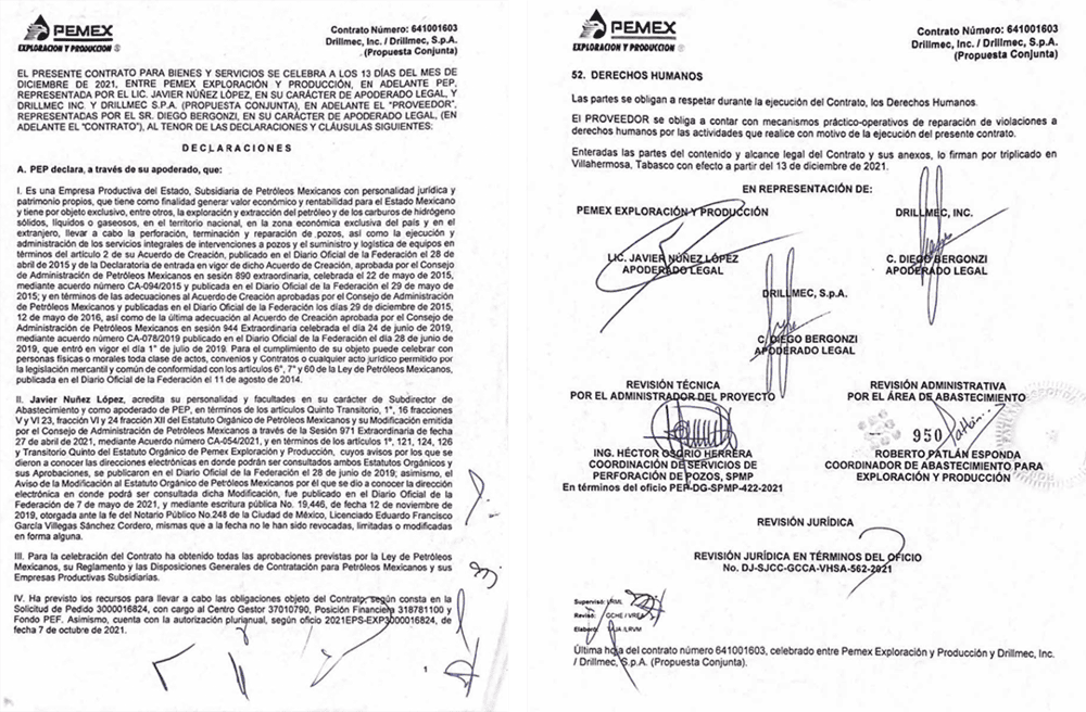 El reportaje de Latinus mencionó en su reportaje del pasado martes que el contrato a favor de Drillmec fue firmado el 13 de diciembre de 2021 por Javier Núñez López, ex funcionario de Pemex y actual director de operaciones del Infonavit, y uno de los hombres de mayor confianza del ex presidente López Obrador.