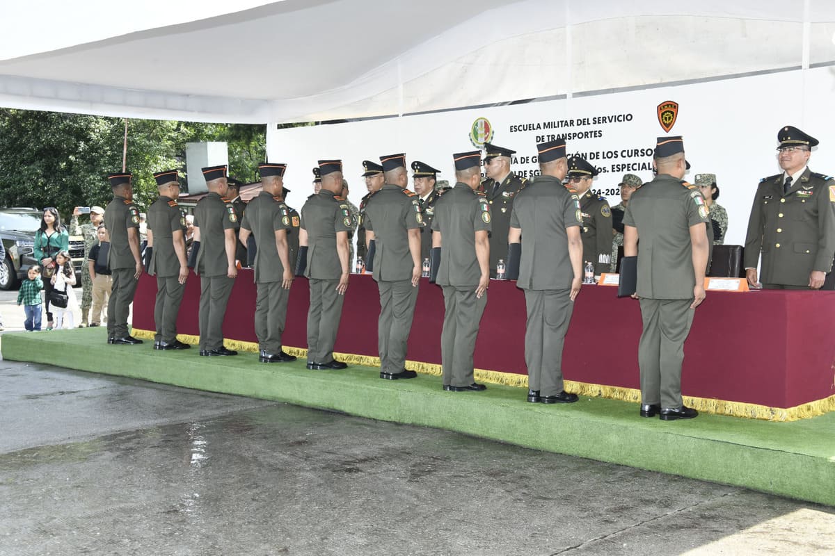 Entre el personal egresado destacan 99 Sargentos 1/os. y 134 Sargentos 2/os., de las especialidades de Conductor, Motociclista, Mecánico y Electricista Automotriz; todos ellos, disponen de las habilidades de destreza, pericia y están imbuidos de un sentido de responsabilidad para cumplir con los servicios de transportación que se requieren en el Ejército, Fuerza Aérea y Guardia Nacional.