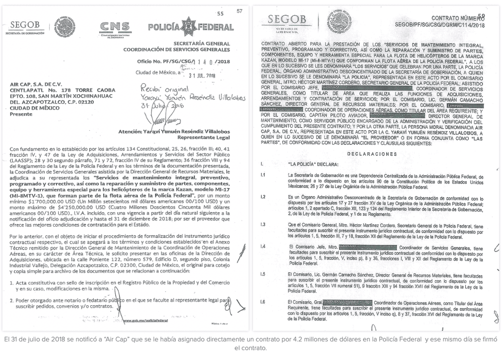 La empresa ya había establecido contacto con el gobierno de López Obrador para seguir como contratista, y prueba de ello es que entre 2019 y 2020 la Secretaría de la Defensa Nacional le envió al menos cuatro oficios de invitación para presentar cotizaciones de distintos servicios. Las invitaciones cesaron cuando en julio de 2021 una investigación periodística global involucró a “Air Cap” entre las empresas de Ansbacher que triangularon la venta de Pegasus.