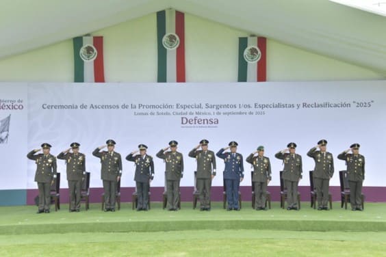 La mañana del lunes 1 de septiembre de 2025, integrantes del Ejército, Fuerza Aérea y Guardia Nacional, participaron en la ceremonia de otorgamiento de Ascensos de la Promociones: Especial, Sargentos 1/os. Especialistas y Reclasificación 2025, evento realizado en el estadio de futbol “Sargento Pedraza” ubicado en Lomas de Sotelo, Ciudad de México.