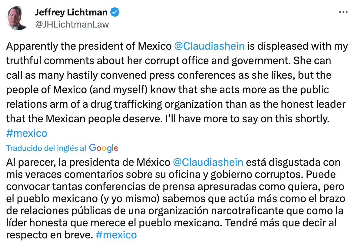 Jeffrey Lichtman, el prominente abogado de Guzmán, se ha convertido en una figura central en esta controversia. En su publicación en X del 12 de julio de 2025, Lichtman escaló la retórica al acusar a Sheinbaum de actuar como «brazo de relaciones públicas de una organización de tráfico de drogas» en lugar de una líder honesta. Esta declaración audaz, tras la reprimenda de Sheinbaum, enmarca el conflicto como un choque entre los intereses legales de Estados Unidos y la integridad gubernamental mexicana. Los comentarios de Lichtman probablemente buscan proteger los intereses de su cliente al desviar la atención hacia las supuestas fallas de México, lo que podría presionar a las autoridades estadounidenses a ofrecer términos más lenientes. Sin embargo, sus declaraciones también corren el riesgo de alienar a los funcionarios mexicanos, complicando la cooperación bilateral en extradiciones y esfuerzos anticartel.