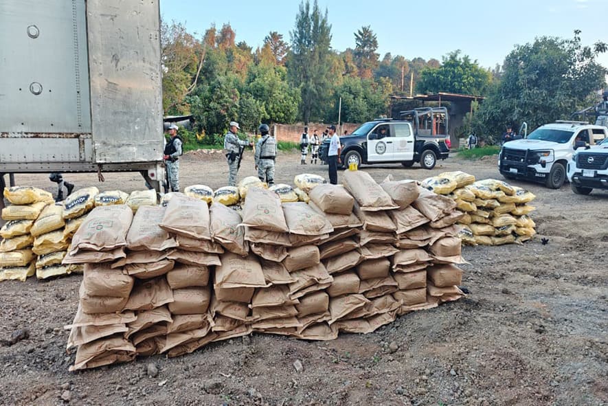 La Secretaría de la Defensa Nacional a través de las Comandancias de la XII Región Militar y 21/a. Zona Militar, hacen del conocimiento a la población que en el marco del Plan Michoacán por la paz y la justicia y la implementación del plan de Operaciones “Paricutín”, integrantes de la Guardia Nacional en coordinación con personal del Ejército Mexicano y autoridades civiles, establecidos en el Puesto de Inspección Ciudadana Pemex, tramo carretero Uruapan – Taretan, municipio de Uruapan, Mich., al realizar la inspección de un tractocamión con caja seca, aseguraron en su interior lo siguiente: