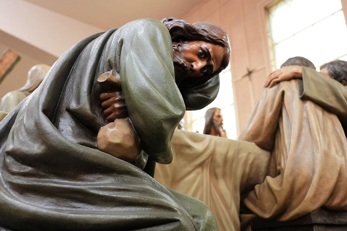 Se dirigió después al Huerto de Getsemaní, le pidió a Pedro, a Juan y a Santiago el mayor, que lo acompañaran. Se sentía invadido por el abatimiento, la hora se estaba acercando. Oró y le pidió al Padre Celestial que sucedieran las cosas como estaba escrito. Sus acompañantes se habían dormido: ¿No han podido velar conmigo ni una hora? Velen y oren. Pronto llegaron los sumos sacerdotes y los ancianos del pueblo. Judas, según el trato, le daría un beso. Tal cual sucedió. Lo apresaron y lo sometieron, como ustedes ya lo saben, a todo tipo de golpes, injurias y vejaciones. “Con un beso entregas al Hijo del hombre”. El Iscariote recibió lo que buscó, la condena eterna.