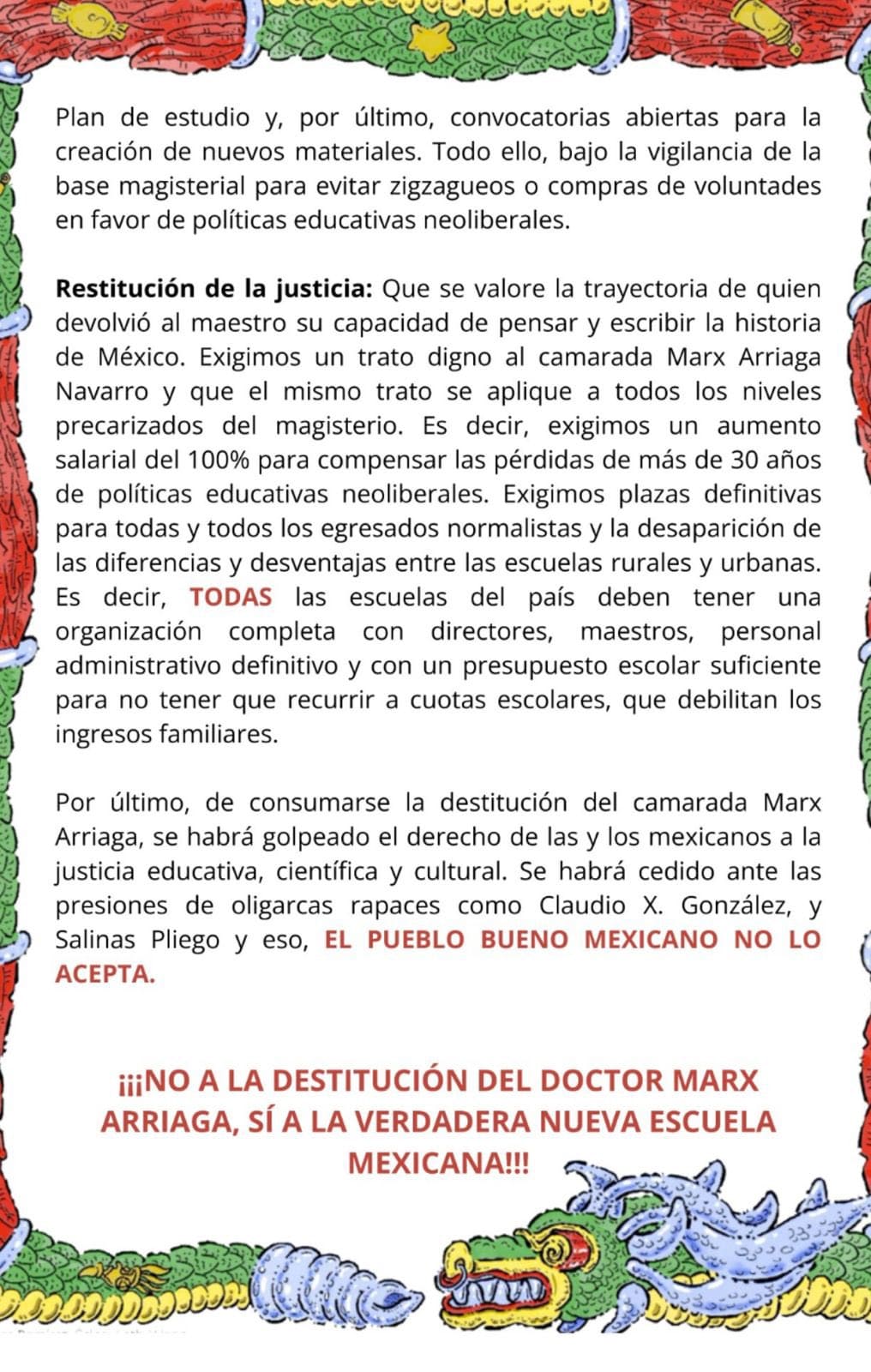 Lo que sí está confirmado es que la SEP ya anunció que el puesto es de libre designación desde este lunes y que habrá nuevo titular. Pero Arriaga sigue ahí, resistiendo como si estuviéramos en 1970 y los patrones fueran los malos de la película. El desplegado, según los que lo han compartido, tiene todo el sabor a aquellos manifiestos donde se hablaba de “lucha de clases” y “explotación capitalista”.