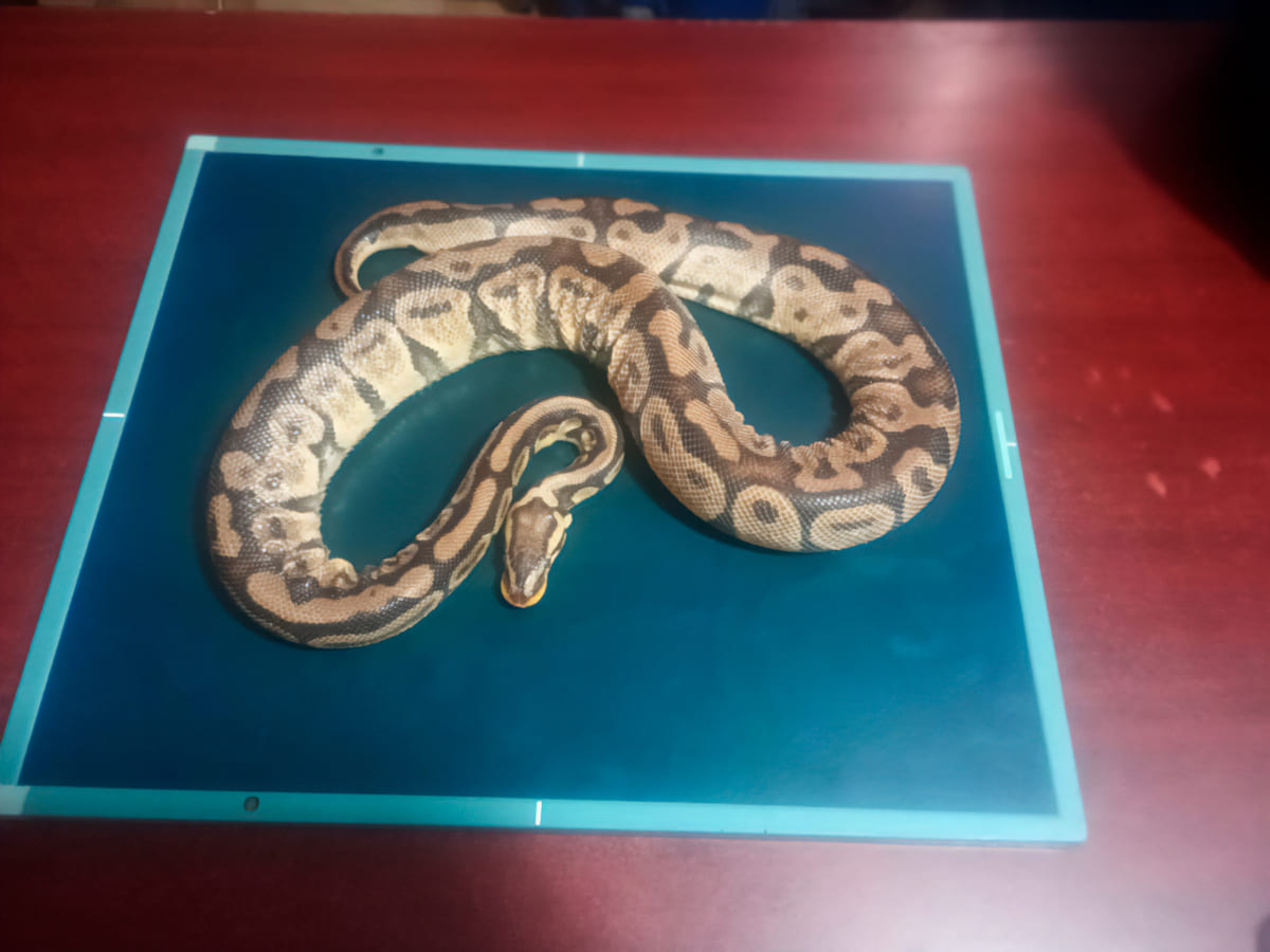 Tras su rescate por parte de la autoridad ambiental, se buscó la revisión médica por parte de un Médico Veterinario con experiencia en fauna silvestre, tal y como se hace con todos los ejemplares que asegura la Profepa en cualquier circunstancia. Así, se detectó que la pitón burmes (Python biviattus) presenta mala condición corporal, deshidratación y retención de muda, además de algunas manchas moradas que podrían indicar golpes o septicemia.