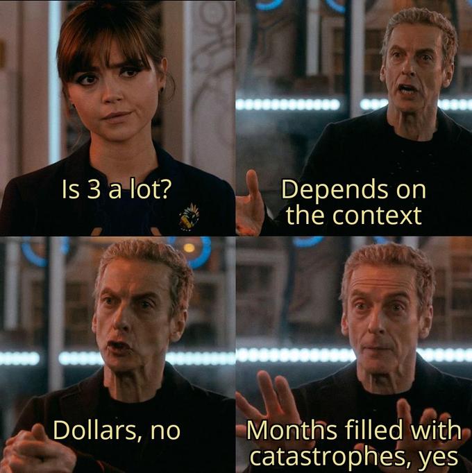 Pero fue en mayo de 2019, cuando se publicó de manera similar en una cuenta de Instagram de parodia de Doctor Who, que mostraba el diálogo que tenía lugar entre el Doctor y el personaje de Clara Oswald. Después de que esa imagen se volvió a publicar en Reddit, se convirtió en todo un fenómeno en Internet en donde las personas cambiaban los personajes en la imagen y el diálogo.