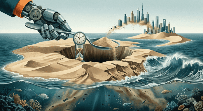Este hecho insólito tiene consecuencias graves y apenas difundidas. El apetito voraz por la arena ha creado una suerte de «fiebre del oro» moderna, pero de granos. En muchos lugares, la extracción ilegal —impulsada por auténticas «mafias de la arena»— está devastando ecosistemas enteros. Al dragar ríos y playas, no solo desaparecen hábitats vitales para la flora y fauna acuática, sino que también se desestabilizan las costas, aumentando la vulnerabilidad ante inundaciones y tormentas. Hay islas que han desaparecido literalmente del mapa por culpa de la minería de arena.