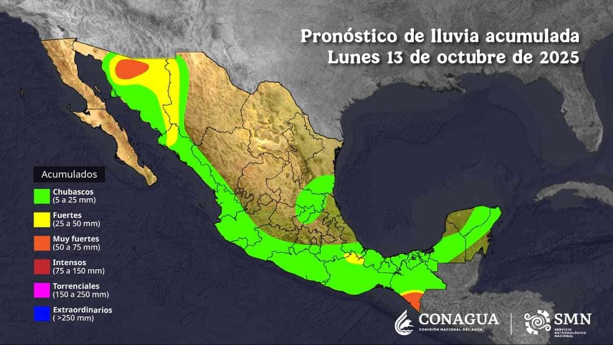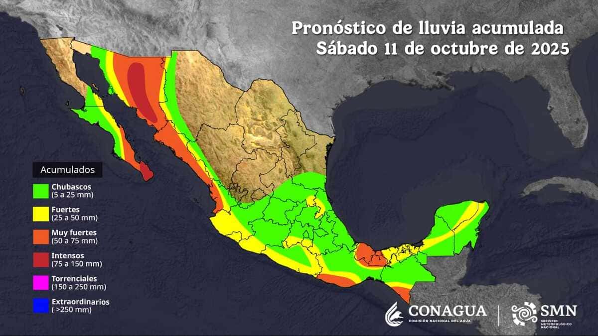 Las lluvias pronosticadas podrían acompañarse de descargas eléctricas y generar encharcamientos, deslaves e inundaciones en zonas de los estados mencionados. Asimismo, los vientos previstos podrían derribar árboles y anuncios publicitarios, por lo que se exhorta a la población a atender los avisos del SMN, de la Conagua, seguir las recomendaciones de Protección Civil, y extremar precauciones ante las condiciones de viento y oleaje elevado.