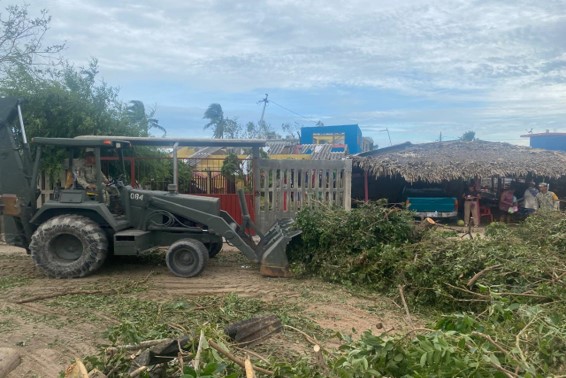 En el municipio de Santiago Pinotepa Nacional, Oax., unidades de maquinaria pesada de Ingenieros del Ejército, se encuentran realizando trabajos de liberación de caminos y tramos carreteros, con la finalidad de recuperar la movilidad del tránsito vehicular.