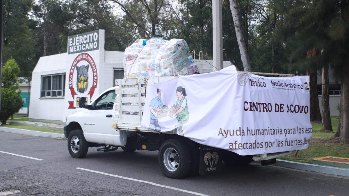 La Secretaría de Medio Ambiente y Recursos Naturales (Semarnat) entregó hoy a la Secretaría de la Defensa Nacional (Sedena), víveres y artículos de limpieza recolectados en sus centros de acopio instalados para apoyar a la población afectada por las recientes lluvias en distintas regiones del país.