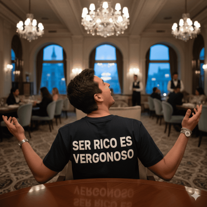 En un episodio que encapsula las tensiones sociales de la México contemporánea, un joven irrumpió en el restaurante de una exclusiva tienda departamental —un bastión del lujo accesible solo para elites financieras— luciendo una playera con el provocador lema: «Ser rico es vergonzoso». Este acto no fue un capricho individual, sino el epítome de una campaña ideológica que ha ganado tracción en círculos progresistas: la estigmatización de la clase alta como un colectivo inherentemente culpable, cuya riqueza se presume derivada de prácticas ilícitas o, al menos, éticamente dudosas. La narrativa es clara: el éxito económico no es mérito, sino pecado social, un eco de retóricas populistas que buscan redistribuir culpas antes que fortunas.