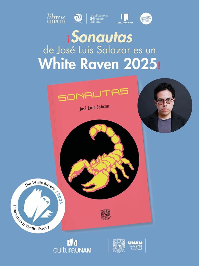 La novela Sonautas del escritor José Luis Salazar, con ilustración de portada de Marco “Sien” Aguirre, fue incluida en el catálogo The White Ravens, que publica anualmente, desde 1989, la Biblioteca Internacional de la Juventud, con sede en Múnich, Alemania. Anteriormente, el libro fue ganador del Cuarto Premio de Novela Juvenil Universo de Letras 2024, convocado por el Sistema Universitario de Lectura Universo de Letras de la Dirección de Literatura y Fomento a la Lectura y por la Dirección General de Publicaciones y Fomento Editorial.