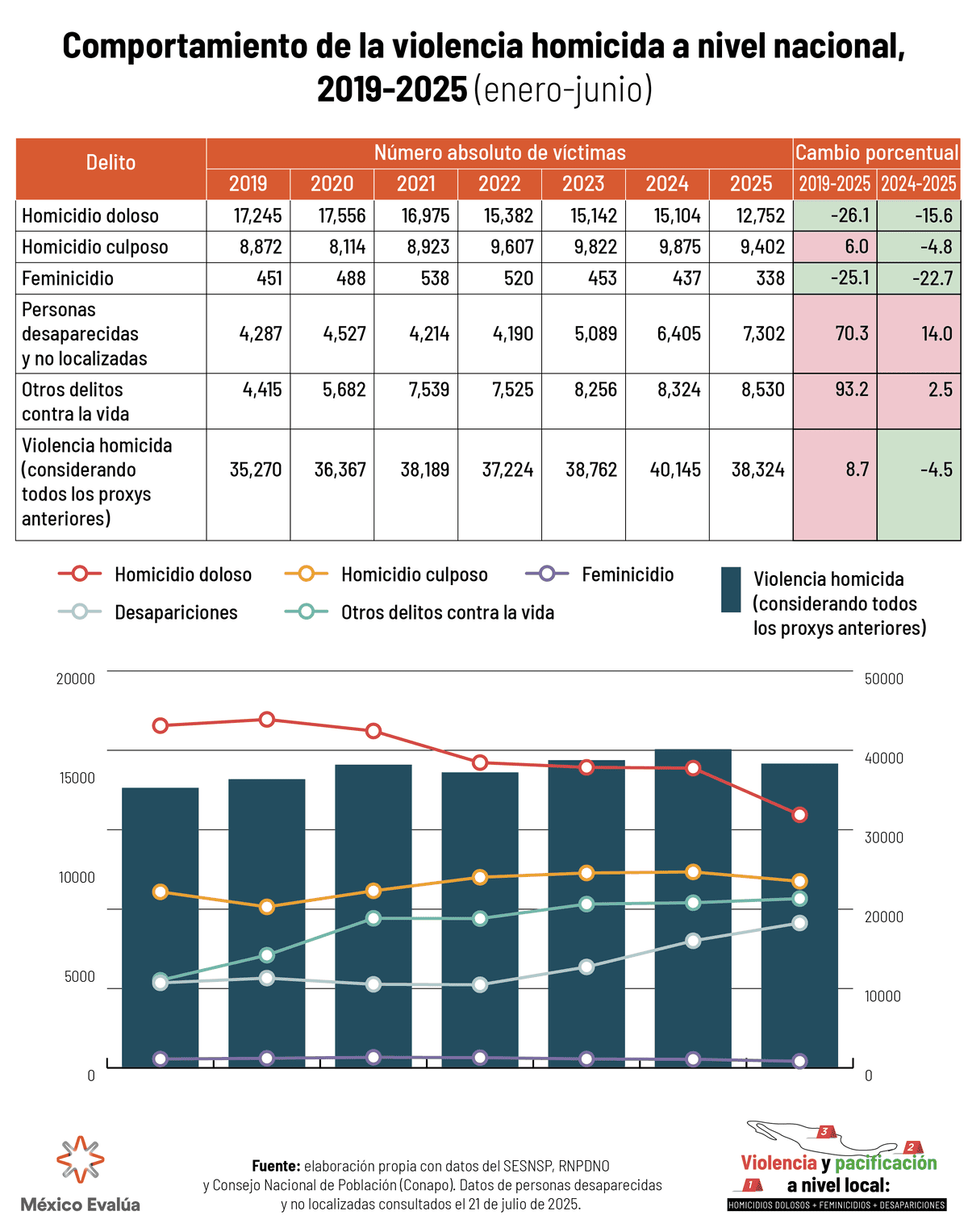 La evolución de la violencia de 2024 a 2025 (cifras totales enero-junio)