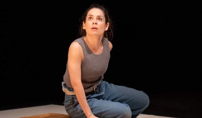 El espacio escénico refuerza esa sensación de vulnerabilidad. La plataforma central funciona como un punto de equilibrio inestable: Lucía se sube, se agacha, se encoge, se expone. No hay cambios espectaculares, pero cada movimiento pesa.